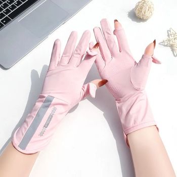 Guanti solari estivi da donna sottili in seta di ghiaccio Anti-ultravioletta con schermo tattile con dita di rugiada guida guanti traspiranti antiscivolo